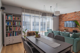 Do salonu najczęściej polecane są żaluzje drewniane 50 mm. Wyglądają nowocześnie i elegancko, idealnie pasują do dużych przeszkleń, lepiej eksponują naturalne usłojenie drewnaoraz optycznie porządkują przestrzeń.